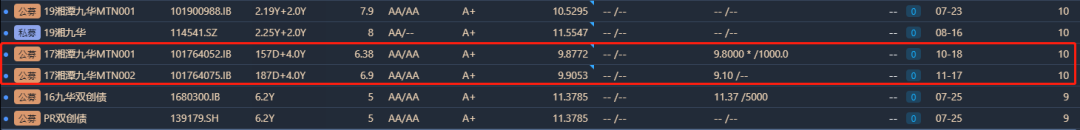 ● 7月23日,2017年年末始快2年沒發出債的九華經建成功發行10億中票“19湘潭九華MTN001”,引發金融圈熱議。