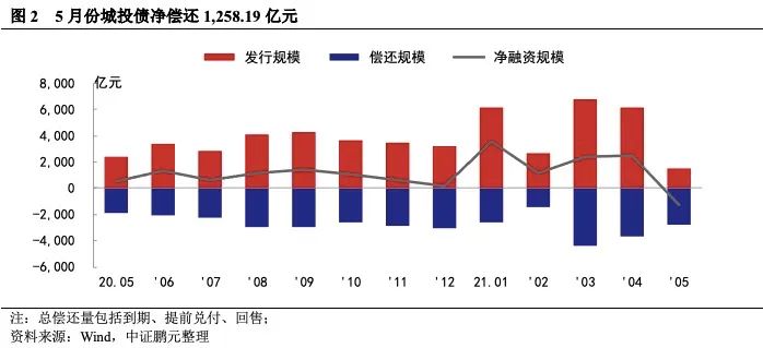 二、5月城投債發行規模大降導致凈融資轉
