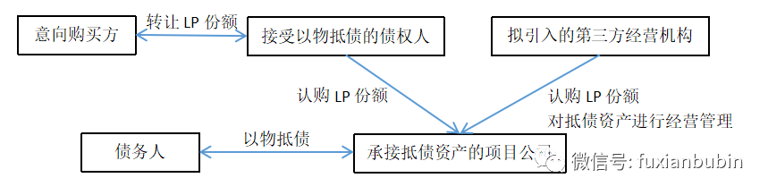 為實現稅務籌劃,并提升資產經營能力,可考慮通過成立項目公司的方式承接擬抵債的資產,并以GP/LP的方式,引入專業第三方經營機構,對資產進行經營管理,提升經營效益,在實現資產增值后再積極尋找意向購買方,通過資產轉讓的方式實現退出。