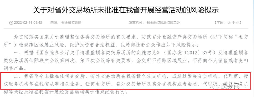 3、2022年2月11日,海南省地方金融監督管理局公告,針對金融資產類交易場所,“至今未批準任何金交所、省外交易場所在我省設立分支機構,或通過發展會員機構、代理商、授權服務機構等在我省從事相關業務。”這個監管政策和監管口徑,與寧波市地方金融監督管理局的基本保持一致。