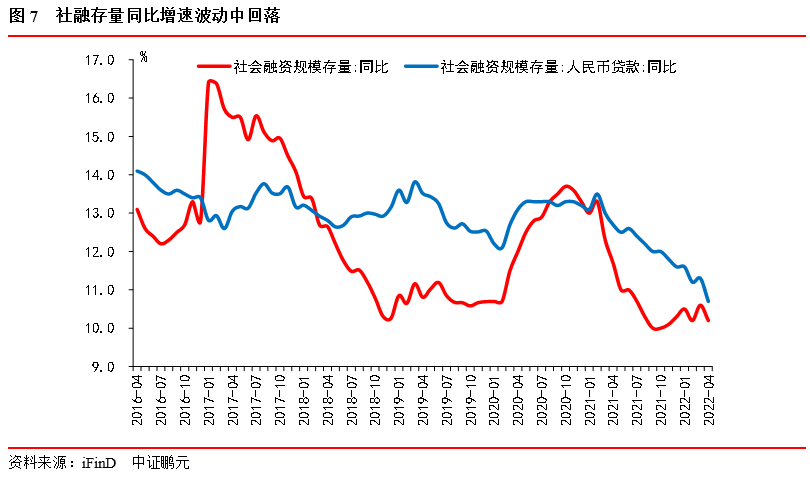 表內(nèi)融資受阻是最主要拖累因素:4月社融口徑的新增人民幣貸款3,616億元,同比少增9,224億元,是2009年12月以來的社融口徑新增人民幣貸款的最低值,表內(nèi)信用嚴(yán)重拖累社融增量。