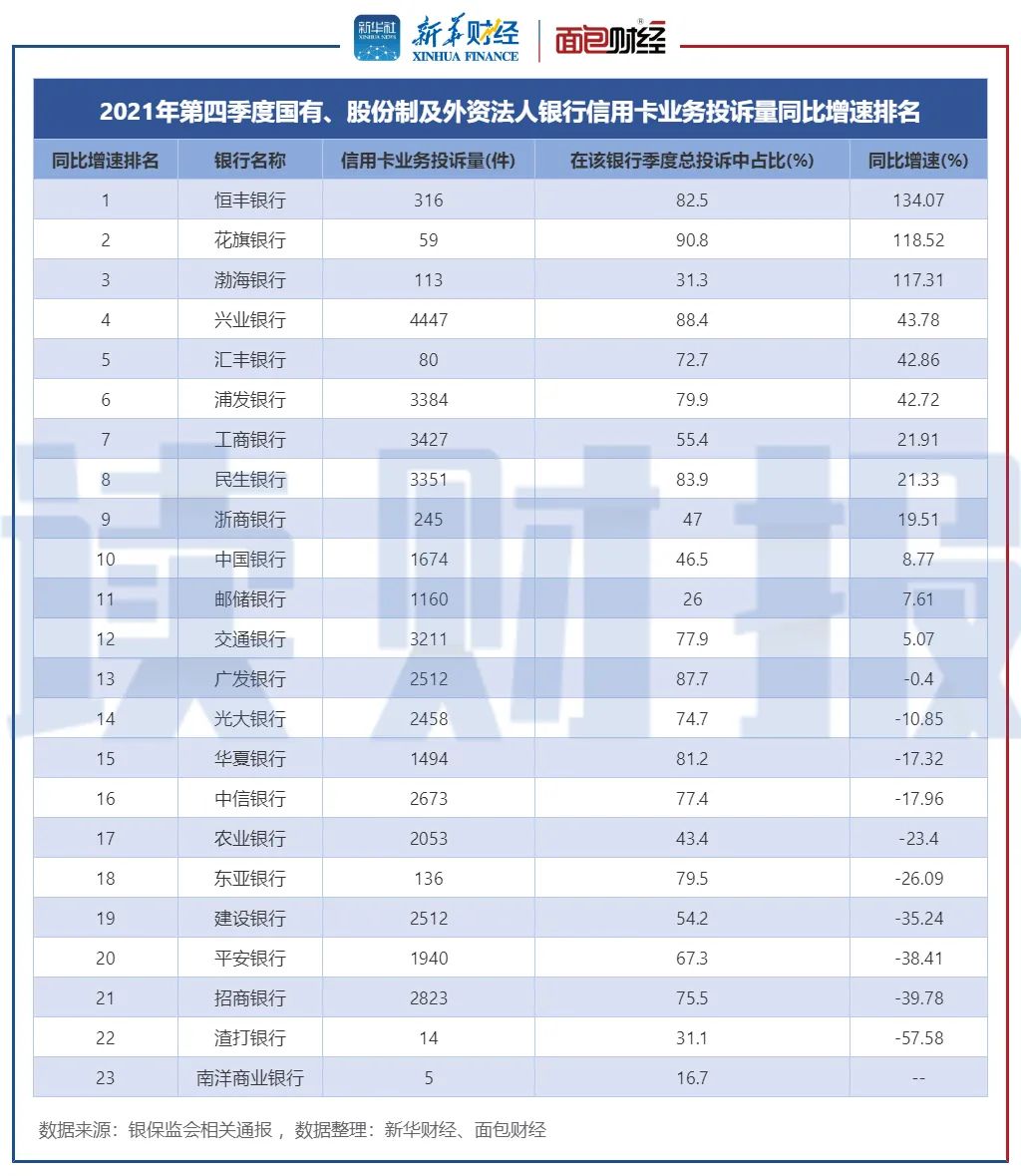 2021年第四季度,建設銀行和農業銀行的信用卡業務投訴量同比顯著下降,降幅分別達到35.24%和23.4%。