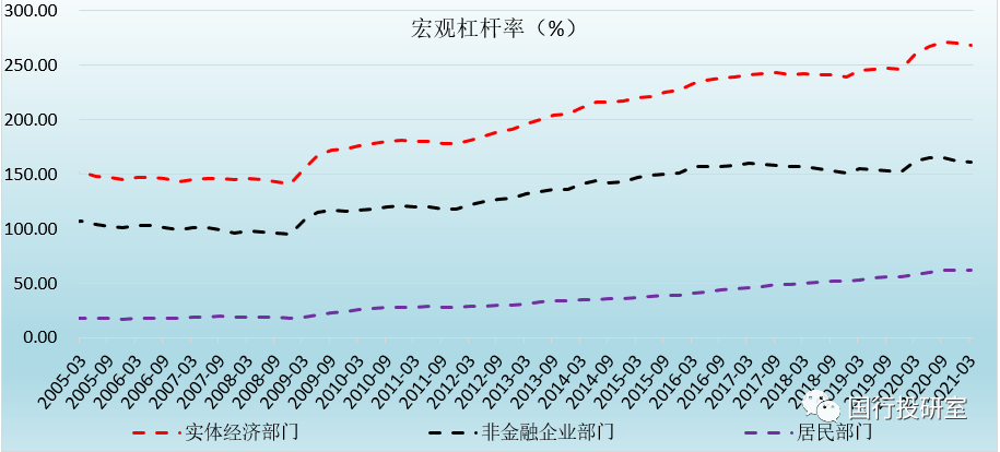 1、2020年為應對疫情,宏觀杠桿率大幅抬升(實體經(jīng)濟部門、非金融企業(yè)部門和居民部門的杠桿率年內最高分別上升24.70個百分點、13.30個百分點和6.10個百分點),因此自2020年下半年以來,降低宏觀杠桿率基本上就已經(jīng)成為政策導向,實際上自2020年三季度以來,宏觀杠桿率已經(jīng)連續(xù)兩個季度下降了。
