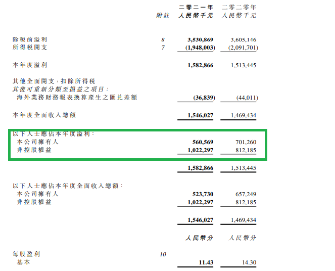 更蹊蹺的是,非控股權(quán)益部分的凈利高達(dá)10.22億元,2020年為8.12億元——這利潤的結(jié)構(gòu),實(shí)在是好玩。