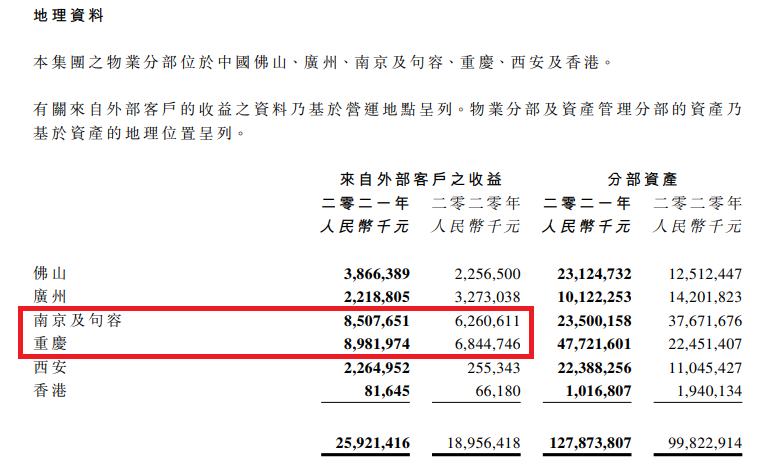 2021年,招商局置地佛山、廣州、重慶、南京及句容、西安以及香港的項(xiàng)目,占總收入的比例分別約:14.9%、8.6%、34.7%、32.8%、8.7%及0.3%。