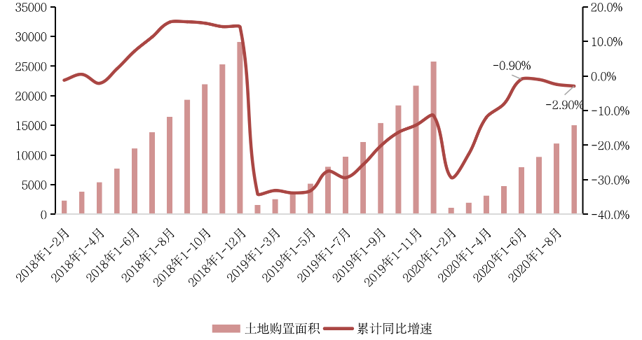 “三條紅線”的影響同樣體現在房企土地購置端。據國家統計局數據顯示:1-9月份,房地產開發企業土地購置面積15011萬平方米,同比下降2.9%,降幅比1-8月份擴大0.5個百分點相較7月即將轉增的跌幅已然擴大2個百分點。受資金面監管收緊影響,房企對于土地購置更加審慎,土地購置面積規模逐月降低,但房企對核心熱點地塊依舊迫切爭奪,1-9月土地成交價款9316億元,增長13.8%,增速提高2.6個百分點。