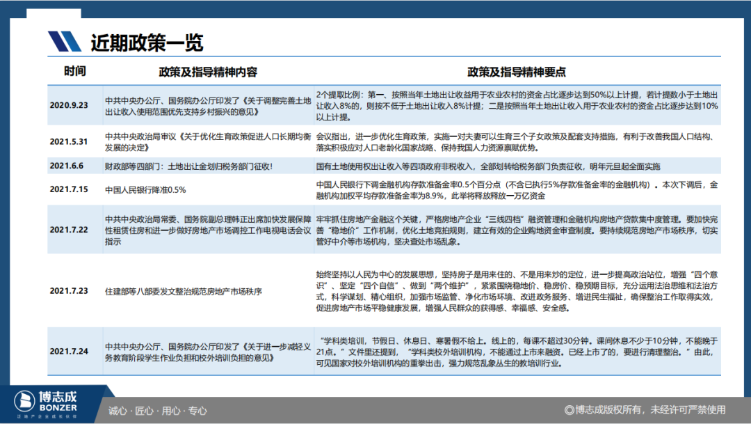 出臺了土地出讓收入的8%用于支持鄉村振興、土地使用權出讓收入等四項政府非稅收入,全部劃轉給稅務部門負責征收等使得中央增強了對地方土地款收支明細的掌控,是繼集中供地政策之后,對供給端調控的進一步深化,會有效地促進相關產業政策的落地