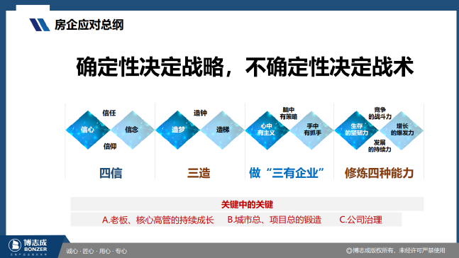 戰術。房地產行業未來依然是15-20萬億的大行業,面對意料之外、情理之中的密集政策,房地產企業如何創新戰術、堅守戰略?