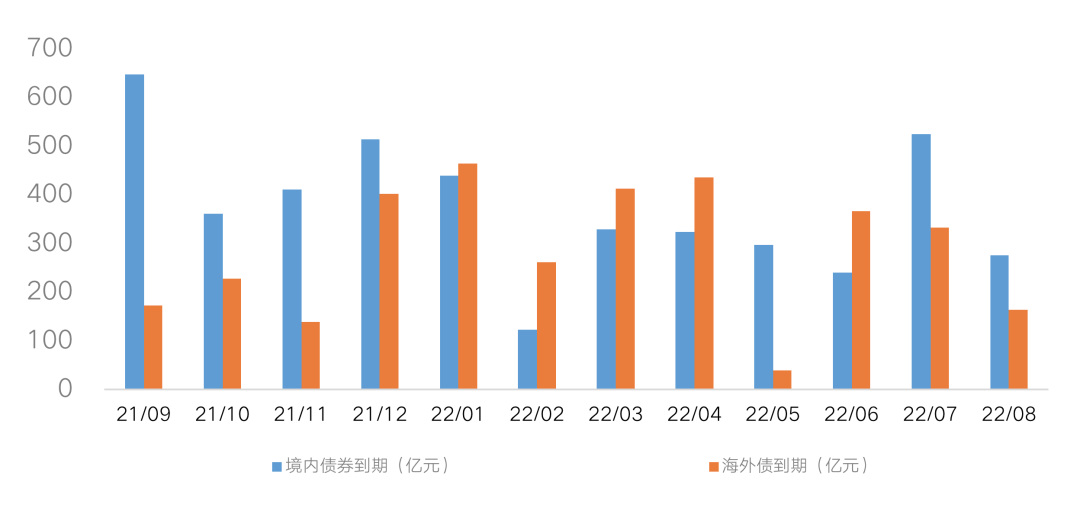 圖:一年內核心房企到期境內債券VS海外債