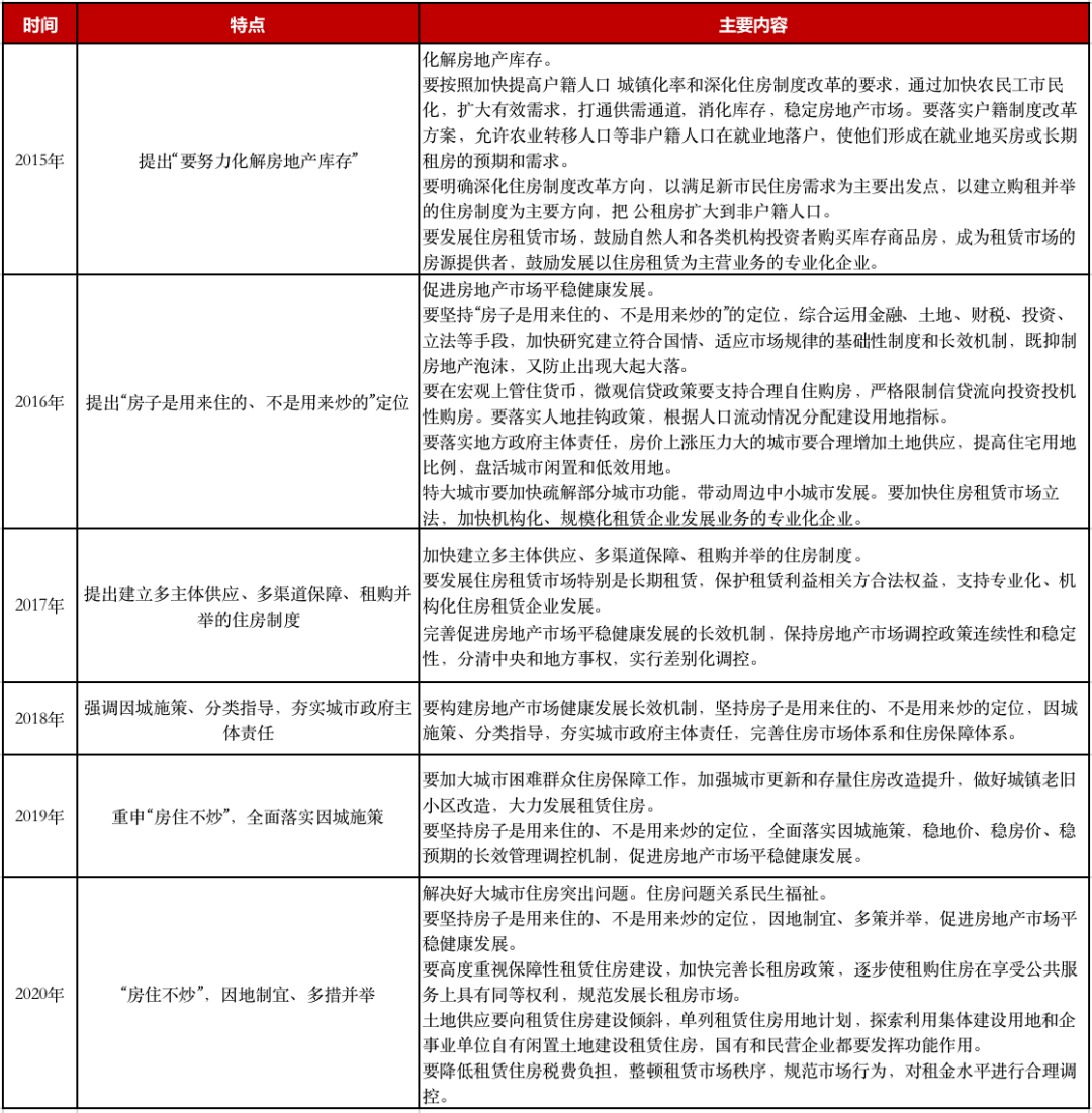 2015-2020年中央經濟工作會議有關房地產內容