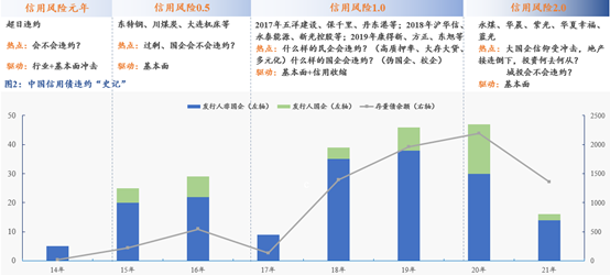 從有違約開始,信用債又經歷了好幾波小的周期,但是從2014年肇始的違約,一直到現在,我們很可能處于同一個大的周期里:金融去泡沫的階段里,對于一些歷史的存量問題,試圖解決。