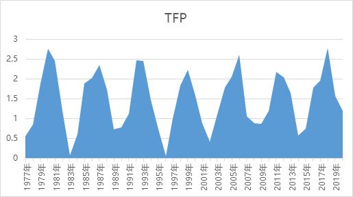 此外,相對學術的算法是計算全要素生產率,也即TFP,這個指標衡量了真實的技術進步相應的貢獻。但是由于數據口徑問題,可能各種測算方法有一定誤差,但是學界整體而言對于經濟的技術驅動和技術進步來看,存在一定程度的誤差,但是從數據的波動看還算有一定的周期性,但是擔憂整體TFP下降以及帶來的動能不足,則是共識。特別是中美貿易背景下,我們從追趕者向創新者的角色需要實現躍遷。