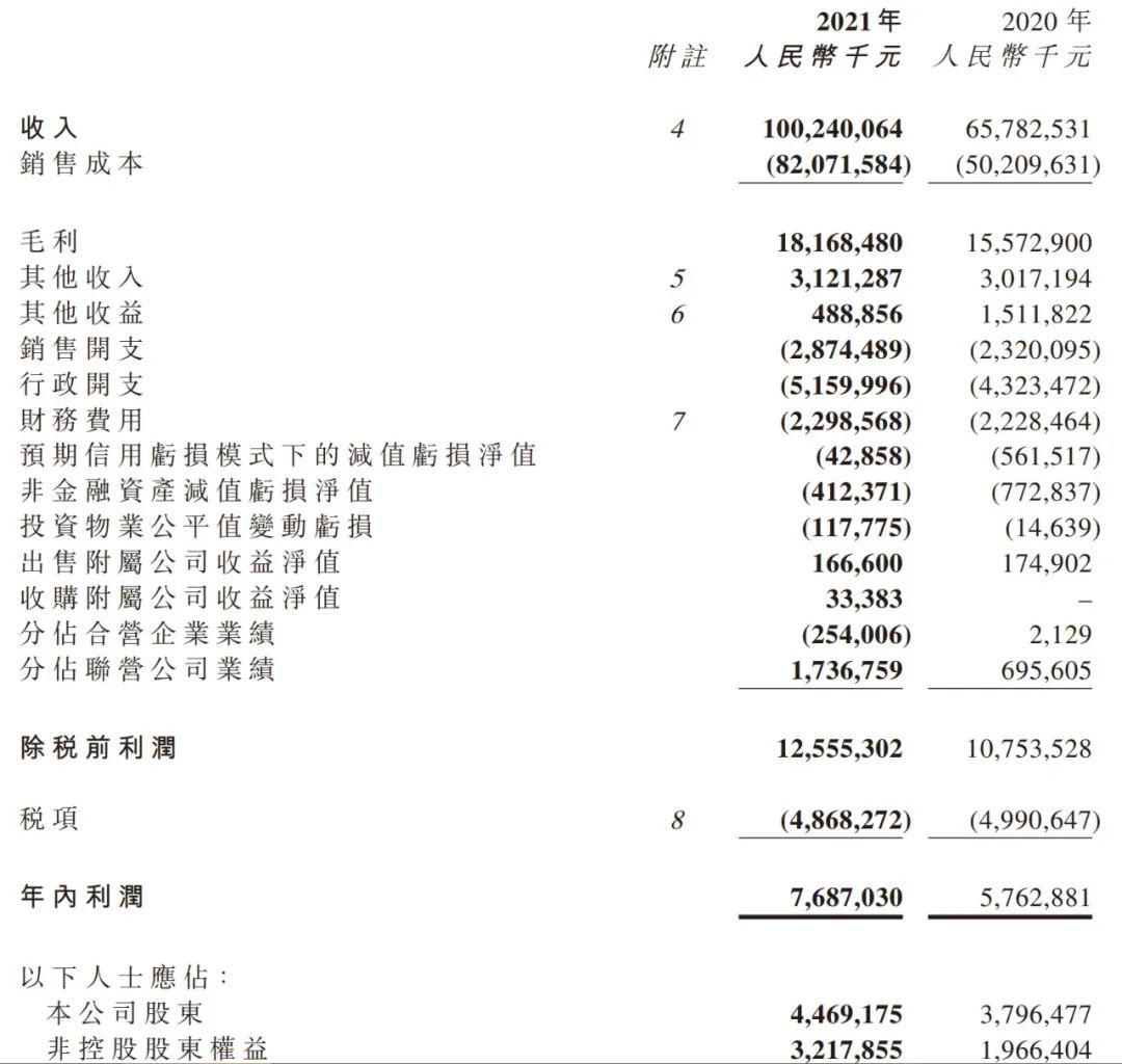 但期間綠城中國的銷售開支、行政開支、財務費用等同比增速均不高,分別為23.9%、19.3%、3.1%,加上分占聯營公司業績大幅上升,從2020年的6.95億上升至2021年的17.37億元,導致最后綠城中國的年內利潤增速還可以。