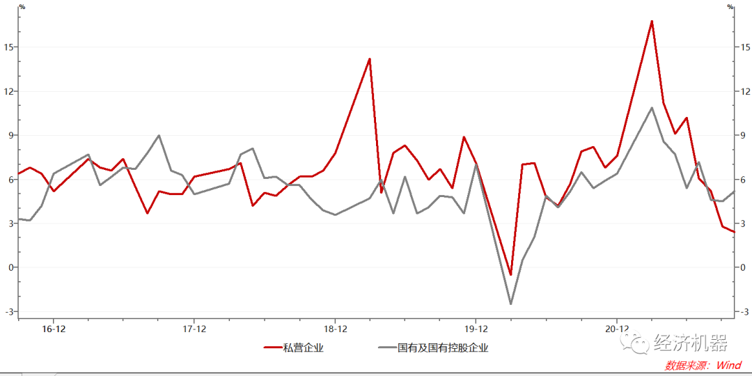 圖2、工業增加值:國有企業和私營企業