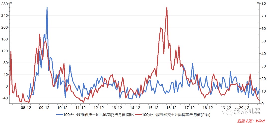 土地市場方面,百城供地面積繼續保持同比負增局面,土地溢價率進一步回落(圖8)。在房地產信用環境持續惡化情況下,土地市場是最先感受到緊縮壓力的環節。在信用條件無實質性改善情況下,土地市場短期不容樂觀,未來或將壓力傳向地方財政。