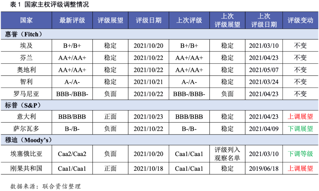 10月23日,標普維持意大利長期本、外幣主權信用級別為“BBB”不變,評級展望由“穩定”上調至“正面”。標普認為,德拉吉政府當前在意大利議院中占據多數席位的優勢將確?!皣一謴秃蛷驮媱潯保≒NRR)計劃在2021年底之前都能順利推進,PNRR的實施將有助于意大利經濟的增長緩和其財政的整頓。標普同時也提到,意大利國內已經實現了80%的疫情接種率,疊加其已經收到第一筆復蘇基金;在此基礎上,意大利將在2021年和2022年實現經濟的快速復蘇,GDP增幅將提前1年恢復至2019年的水平。疫苗接種率的提高、私人儲蓄的增加、商業和家庭信心的增加、歐盟復蘇基金的到位和旅游業的逐步恢復都將驅動未來意大利經濟的穩步上揚。因此,標普上調意大利評級展望至“正面”。