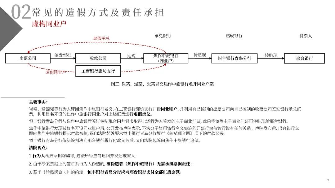 2. 由于涉案票據(jù)上的簽章系行為人偽造的, 被偽造者(焦作中旅銀行)無(wú)需承擔(dān)票據(jù)責(zé)任;