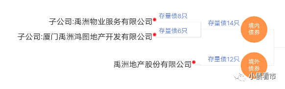 除此之外,禹洲地產(chǎn)還存續(xù)境內(nèi)債14只,發(fā)債主體主要是旗下子公司禹洲物業(yè)和禹洲鴻圖地產(chǎn)。