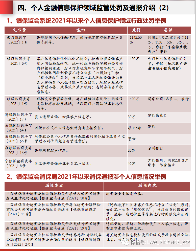 四、個人金融信息保護領域監管處罰及通報