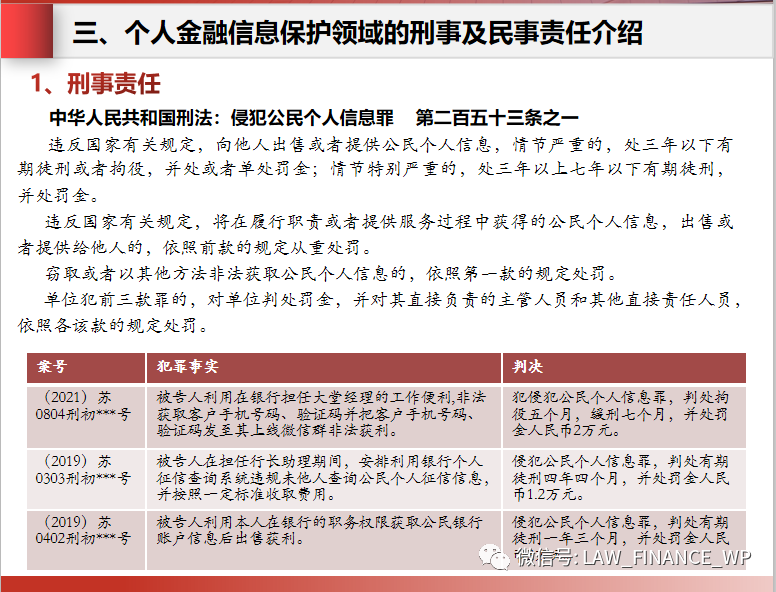 三、個人金融信息保護領域的刑事及民事責任