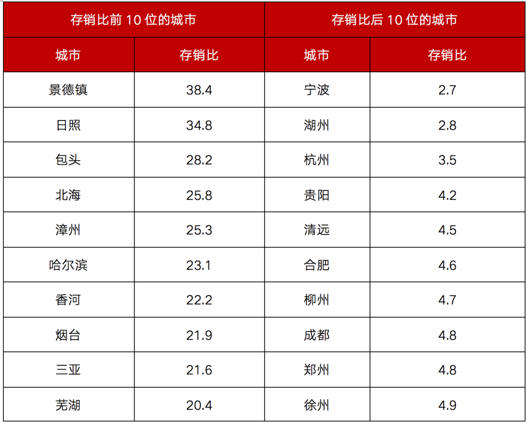 表:部分城市存銷比排名情況