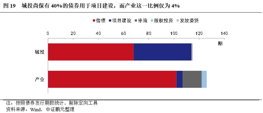 4.城投尚保有40%的債券用于項目建設,而產業這一比例僅為4%