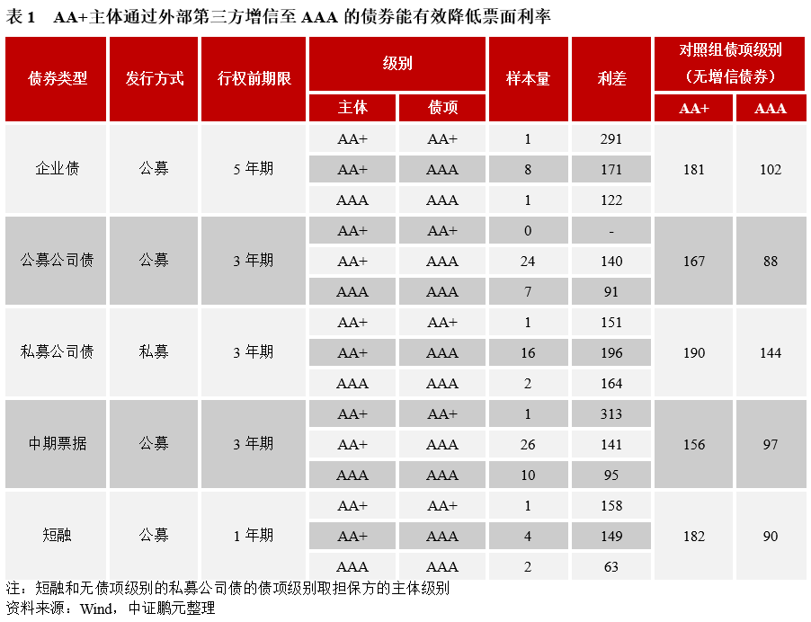 3.外部第三方增信能有效降低票面利率,對于從AA+提升至AAA的債券相當于提升半個小級別