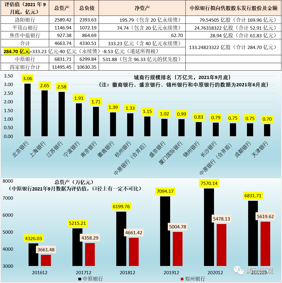 其中,中原銀行以284.70億元的總代價收購上述三家城商行目標(biāo)股東持有的股份。