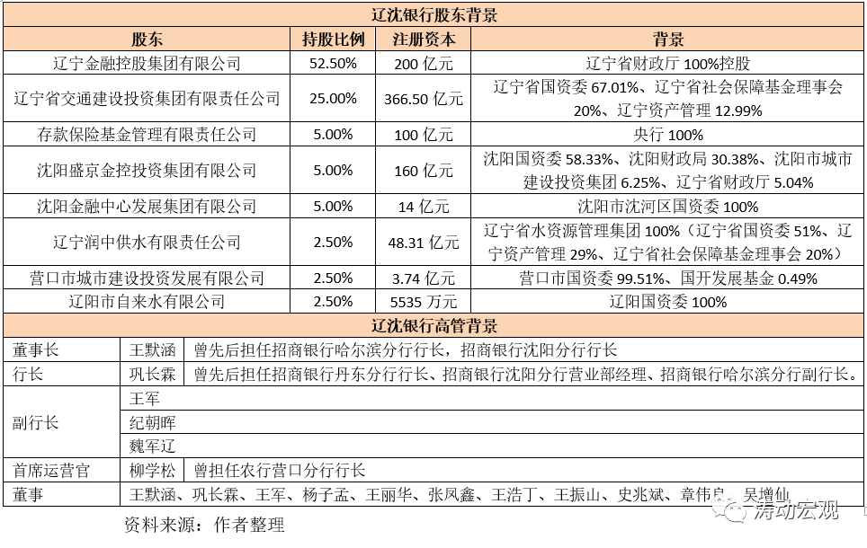 4、遼沈銀行的股東背景主要為沈陽國資委、沈陽財政局、營口國資委、遼陽國資委等,因此遼沈銀行整體是被定位為省級城商行的。