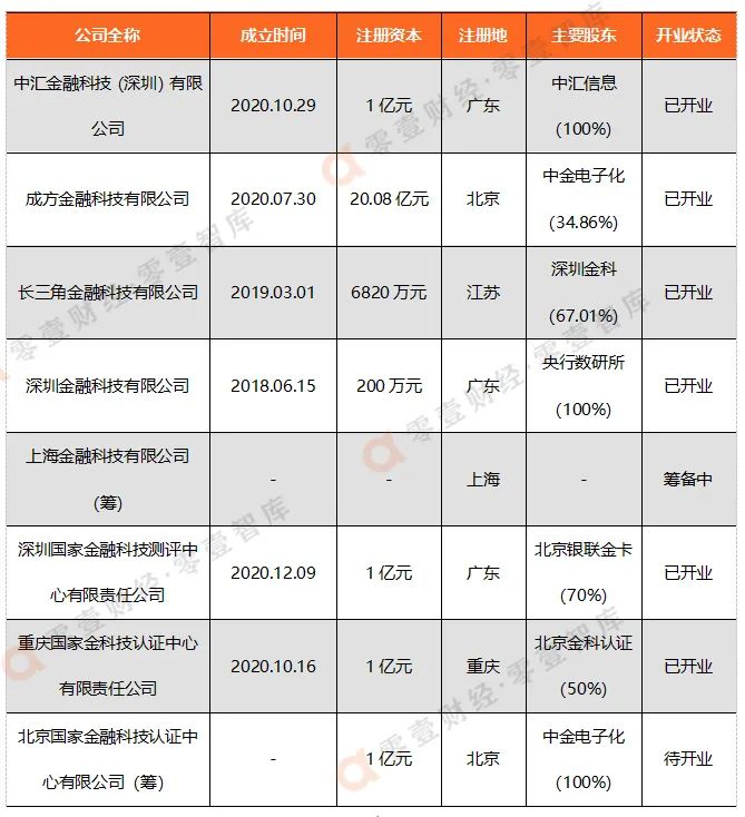 表2:央行成立的金融科技子公司/認證中心/測評中心