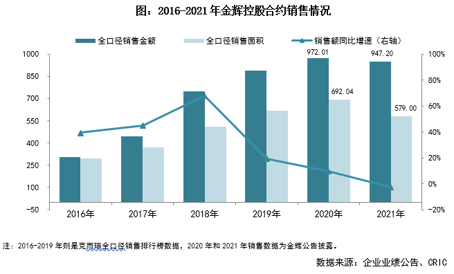 2021年金輝實現(xiàn)全口徑合同銷售額947.2億元,其中,上半年實現(xiàn)銷售額557.7億元,完成全年業(yè)績的58.88%;受下半年調(diào)控政策升級影響其銷售額出現(xiàn)下滑,7-9月平均月銷售額從2021上半年的92.95億元下滑至58.6億元,進入四季度金輝加速搶收,10月起銷售觸底反彈,10-12月的平均月銷售額恢復(fù)至71.23億元。