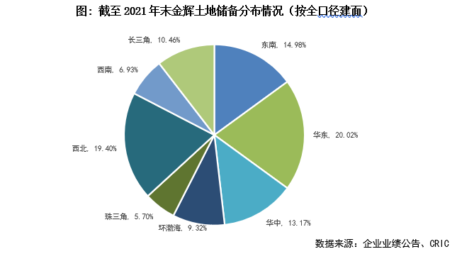 2021年金輝獲取30塊土地,新增土儲建面389.51萬平,全口徑土地款238.19億元,權(quán)益土地款156.76億元(同比下降14.5%),新增土儲權(quán)益建面255.09萬平(同比下降28.7%)。年內(nèi)金輝全口徑拿地銷售金額比0.25,上下半年相對均衡(上半年:0.26,下半年0.23),投資態(tài)度與TOP31-50同梯隊房企基本持平(TOP31-50拿地銷售金額比0.24),拿地強度控制在40%的政策紅線內(nèi),投資視具體銷售情況而定,量入為出、嚴控現(xiàn)金流安全。