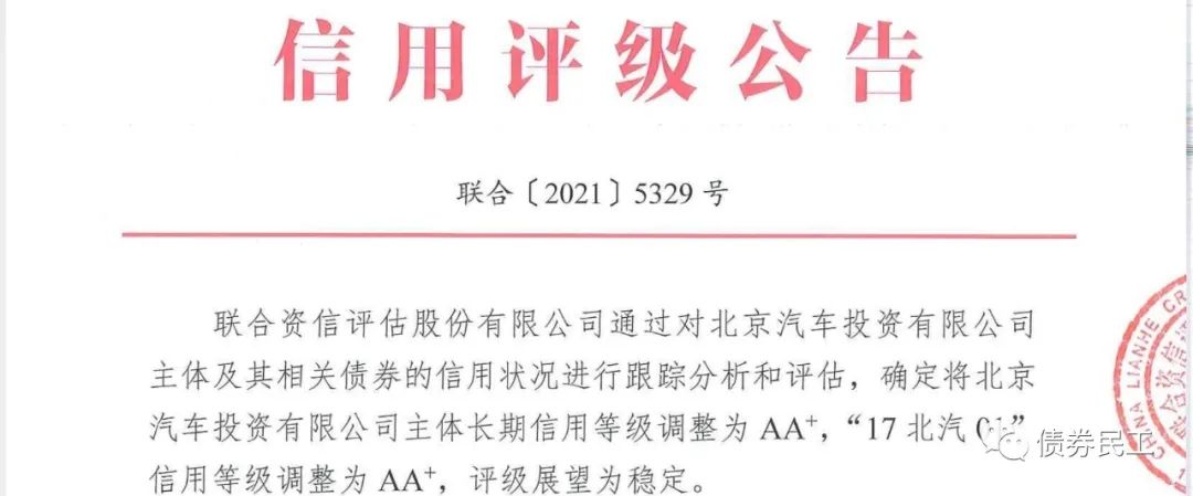 北汽投資為北京汽車股份有限公司的控股子公司,實際控制人是北京市國資委。根據北汽投資披露的2020年年報,2020年度投資收益為-29.30億元,已經超過公司2019年末凈資產的10%。目前北汽投資的存量債券只有一只小公募公司債券,為“17北汽01”,債券金額為8億元。北汽投資不是近期唯一一家主體信用評級被下調的北京市國有企業,在此之前的2021年6月22日,海淀區國資委控股的北京三聚環保新材料股份有限公司的主體信用評級由AA+下調至AA(海淀國資委控股的三聚環保主體評級被下調至AA?。?/p>