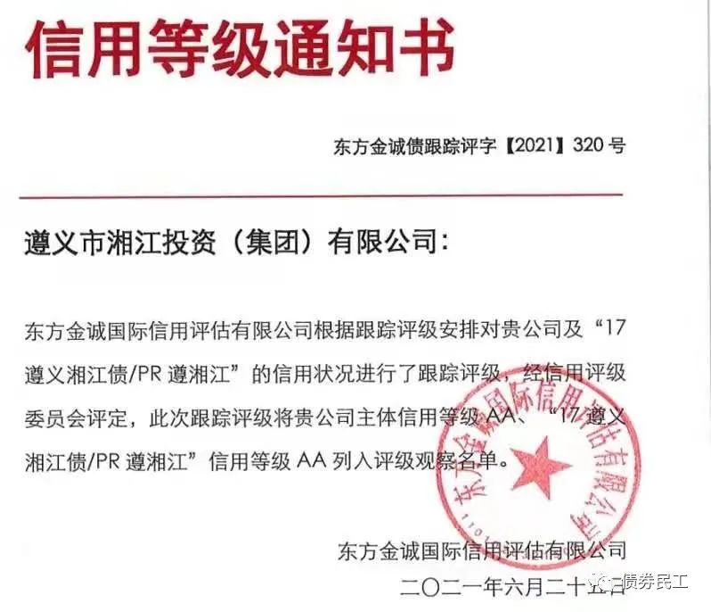 2、遵義市湘江投資(集團)有限公司(以下簡稱“遵義湘江投資”)的主體信用等級AA列入評級觀察名單。遵義湘江投資主要是承擔基礎設施建設業務、租賃業務和保障性住房建設業務等。
