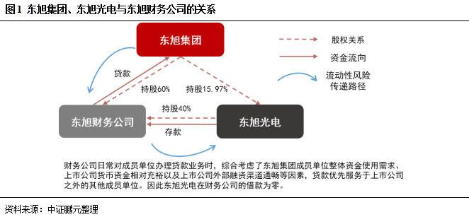 東旭財務公司是經中國銀行保險監督管理委員會批準(銀監復[2016]444號)、河北省工商行政管理局登記注冊的非銀行金融機構,注冊資本50億元,其中東旭集團有限公司(簡稱“東旭集團”)出資30億元,東旭光電出資20億元,于2017年1月開業。截至2020年6月23日,東旭光電在東旭財務公司的存款余額79.32億元,但是東旭光電未曾向東旭財務公司借款,因為財務公司日常對成員單位辦理貸款業務時,綜合考慮了東旭集團成員單位整體資金使用需求、上市公司貨幣資金相對充裕以及上市公司外部融資渠道通暢等因素,貸款優先服務于上市公司之外的其他成員單位,因此東旭光電在財務公司的借款為零。根據東旭光電回函內容,東旭集團是東旭財務公司的最大貸款客戶,東旭集團近幾年高速發展,出現了金融杠桿過大、管理不夠精細等問題,受國家經濟去杠桿并疊加中美貿易摩擦等因素影響,2019年以來流動性持續緊張,在公開債券市場違約后(2019年12月27日,東旭集團未能按時兌付16東集06本息,首次發生信用債違約,此后多只債券相繼違約),信用受到嚴重損害,多家金融機構及債權人集中采取了斷貸、抽貸及擠兌行為,加劇了流動性緊張的局面,由于東旭集團流動性風險向東旭財務公司延伸,導致東旭光電在東旭財務公司的存款支取受到限制。