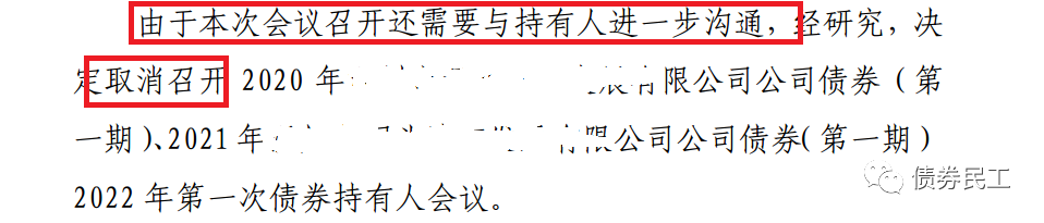 2022年1月17日,某城投公司發布新的公告,因為“需要與持有人進一步溝通”,本次債券持有人會議取消召開。