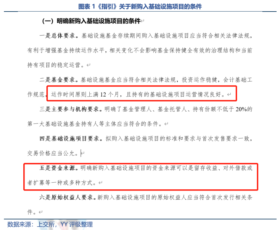 同時明確新購入基礎設施項目的資金來源可以是留存收益、對外借款或者擴募等多種或一種方式。《指引》并未對資金來源做出限制,對于原始權益人來說,這樣不僅可以靈活安排資金,且能夠在短時間內(nèi)獲得增量投資資金。