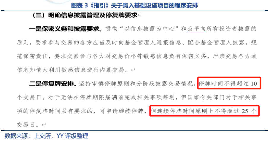 在信息披露管理和停復牌方面,明確了購入基礎設施項目期間定期披露進展情況,規(guī)范了對敏感信息的保密責任。這邊借鑒了股票市場經(jīng)驗,通過分階段披露方式減少停牌時間,停牌時間原則上不超過10個交易日,特殊情況可申請繼續(xù)停牌,但連續(xù)停牌時間原則上不得超過25個交易日。