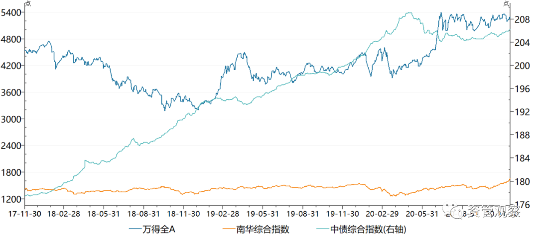 雖然經(jīng)歷了疫情的無情沖擊,但是整體來看,資產(chǎn)價格依然取得了較好的收獲,風(fēng)險資產(chǎn)投資收益明顯好于安全資產(chǎn),股票資產(chǎn)好于大宗商品,大宗商品好于債券資產(chǎn),體現(xiàn)了疫情有效控制以及積極財政政策和貨幣政策對于投資者信心的提振。全年(截至12月18日,下同)來看,創(chuàng)業(yè)板投資收益達到54.6%,位居首位;滬深300指數(shù)收益率為22.1%,位居次位;貴金屬、工業(yè)品指數(shù)分別實現(xiàn)了14.5%和11.8%的收益率;信用債和國債指數(shù)的收益率僅為1.8%和3%,尚未跑贏通貨膨脹。不過季度趨勢看,滬深300指數(shù)和創(chuàng)業(yè)板指數(shù)都經(jīng)歷了二季度之后的收益率下滑,國債和信用債相對而言一季度和四季度表現(xiàn)更佳,貴金屬波動性較大,二三季度實現(xiàn)了較大幅度的正收益率,而一、四季度投資收益率明顯下滑,工業(yè)品期貨相對而言二四季度表現(xiàn)更好。