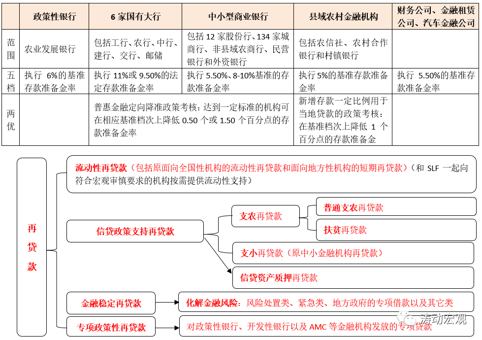 (3)我國的法定存款準備金制度始于1985年(這一年各類型銀行相繼涌現之時),在2008年以前一直采取“一檔”模式,即無論金融機構大小、性質、重要性程度如何,均實行統一的法定存款準備金率。2007-2008年金融危機后,貨幣政策當局開始根據金融機構重要性程度、規模大小、性質等設置有差異的存款準備金率,由一檔到兩檔,再到目前的五檔兩優(銀行業為三檔兩優)。