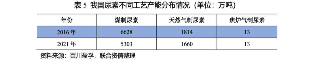 現(xiàn)階段,我國尿素產(chǎn)能中以天然氣為原料的約占24%,以煤炭為原料的約占76%(其中固定床工藝占比34%左右)。煤頭尿素主要在華北等煤資源豐富的地區(qū),氣頭尿素主要集中在西南天然氣豐富地區(qū)。由于處于產(chǎn)業(yè)鏈條的下游,在原料資源稀缺的情況下,尿素企業(yè)不可避免地對上游產(chǎn)業(yè)產(chǎn)生較強的依賴,因此,原料保障、議價能力將構成尿素企業(yè)競爭力的重要組成部分。近年來,國內(nèi)天然氣消費迅速增長,多數(shù)氣頭尿素生產(chǎn)企業(yè)由于天然氣供應階段性緊張被迫停產(chǎn)檢修。相比而言,大型煤頭尿素生產(chǎn)企業(yè)在資源獲得、議價能力等方面存在一定天然優(yōu)勢,原料供應保障能力較強,但受落后產(chǎn)能淘汰影響,煤制尿素產(chǎn)能也大幅下降。