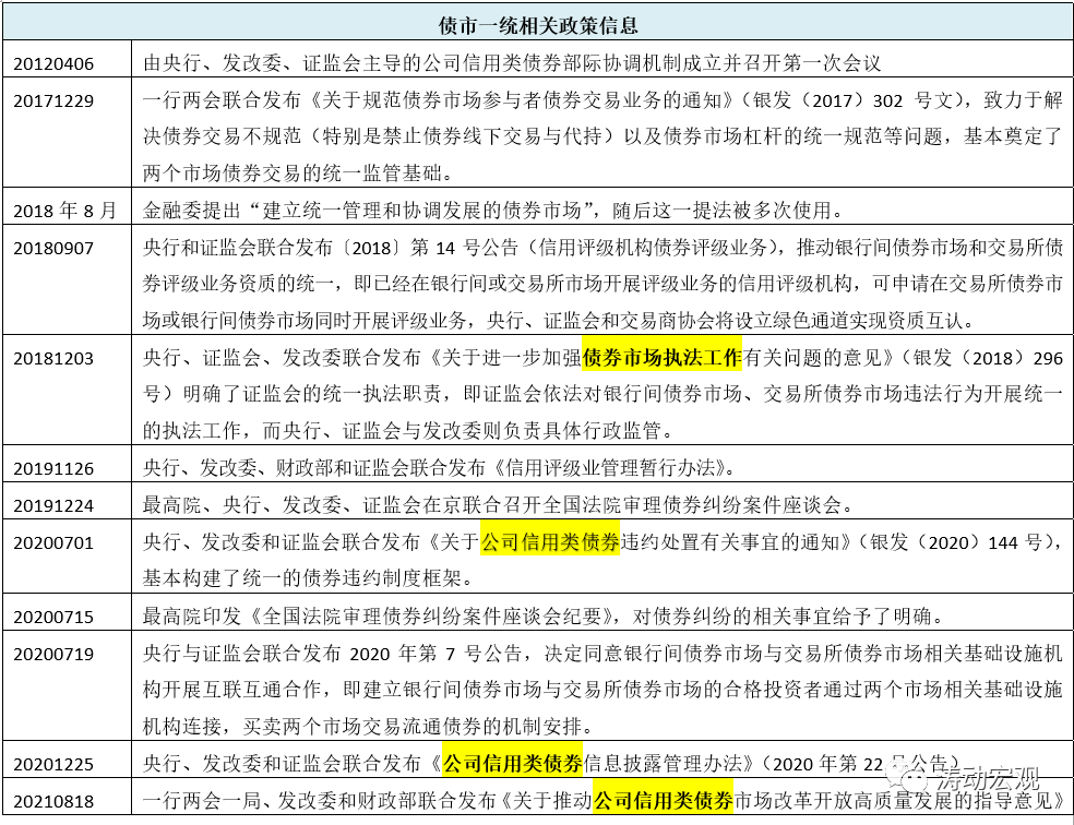 2021年8月18日,一行兩會一局、發改委和財政部聯合發布《關于推動公司信用類債券市場改革開放高質量發展的指導意見》(可以將其理解為信用債的未來五年發展規劃),這是繼《關于進一步加強債券市場執法工作有關問題的意見》、《關于公司信用類債券違約處置有關事宜的通知》和《公司信用類債券信息披露管理辦法》之后,債市大一統的又一個標志性文件,預示著經過多年努力,債市的大一統時代基本已經到來。