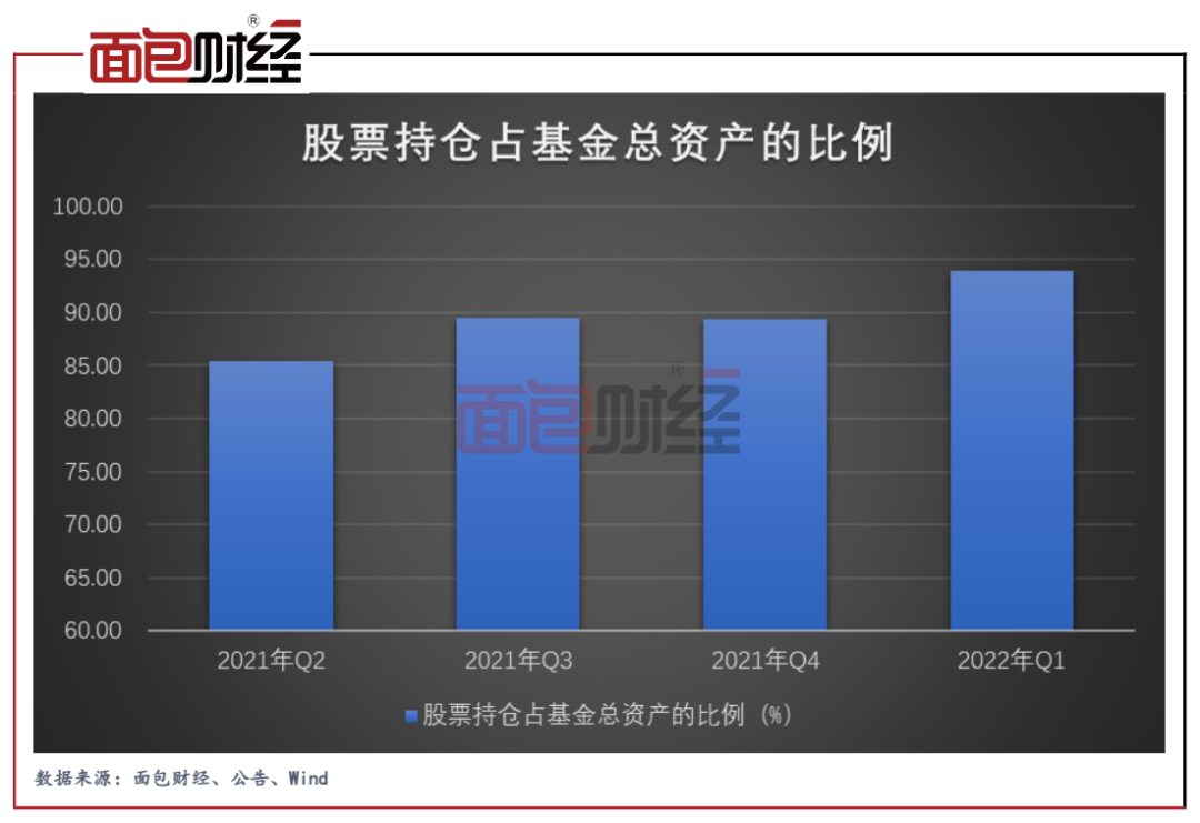 基金成立后披露的首份季報顯示,截至2021年二季度末,該基金股票投資金額已達到68.19億元,占基金總資產的比例為85.42%。隨后幾個季度,嘉實競爭力優選混合的股票持倉整體處于上升趨勢并于2022年一季度末達到近94%。