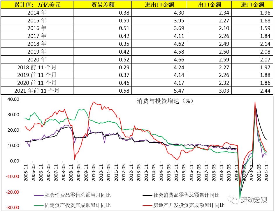 隨著海外疫情的改善以及基數效應的存在,支持今年外貿增長的價格上漲、訂單回流等因素料將難以持續,2022年的貿易數據出現回落基本已經確定,因此國內經濟增長的動力預計會出現一定程度的輪轉跡象,之前表現一直不佳的消費和基建投資可能開始且必須要充當主力(當然這需要寬松政策的加持)。特別是從中央經濟工作會議的定調來看,2022年有極大可能會迎來新一輪基建浪潮(需重點關注近期各政策部門均在提及的區域經濟戰略),以有效引導投資。從這個角度看,2022年內需的重要性將大于外需、投資的重要高于消費,消費的增長情況取決于地產消費需求的釋放以及就業的改善情況。