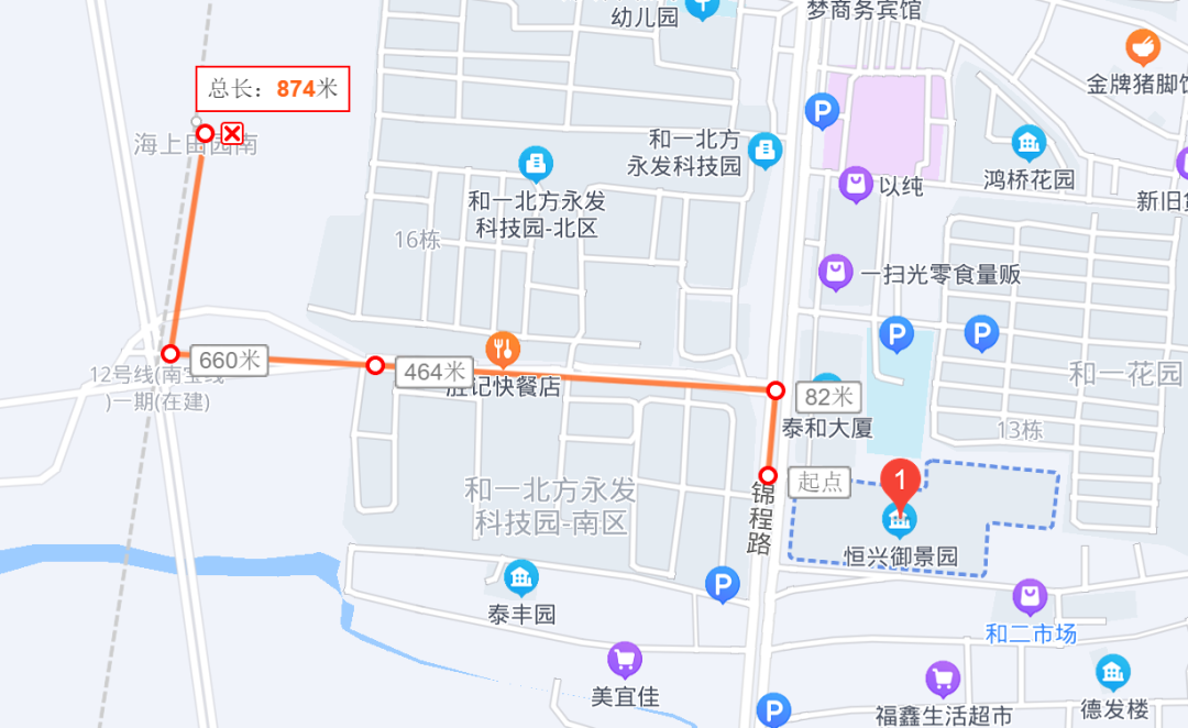 2、項目距海上田園南站約874米,步行約12分鐘左右。