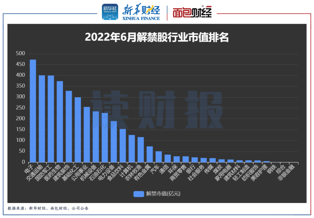 電子、交通運輸、國防軍工行業解禁市值居前