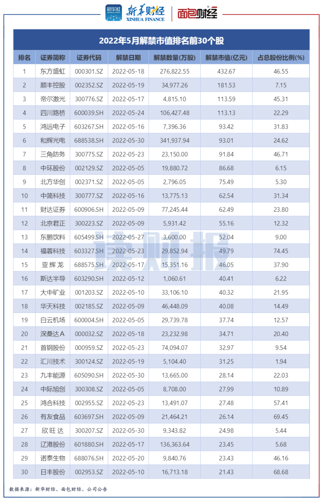 圖5:2022年5月解禁市值排名前30個股