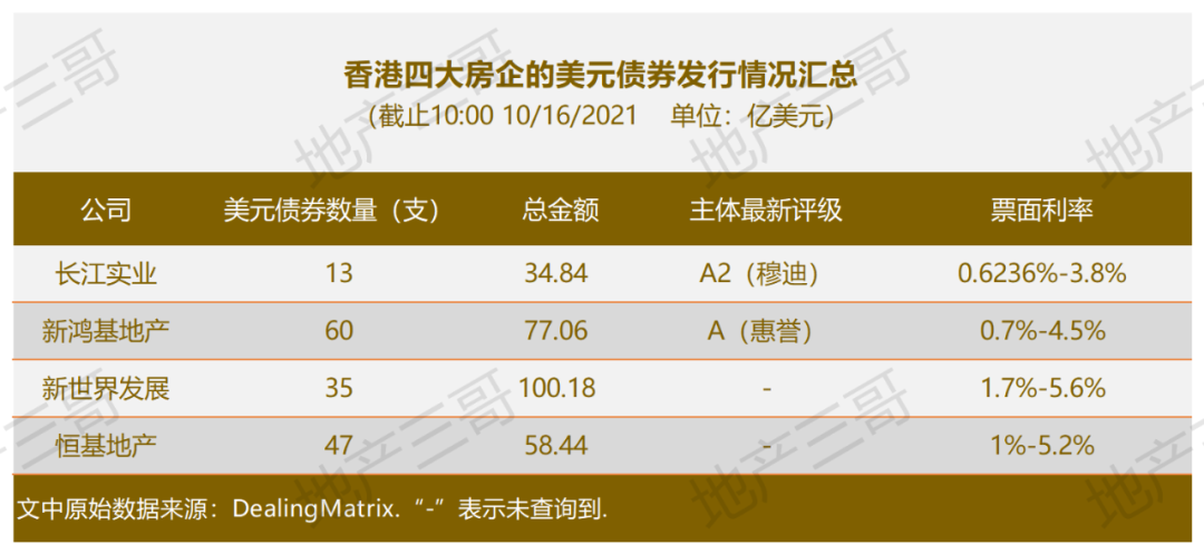 香港地產商美元債發行情況: