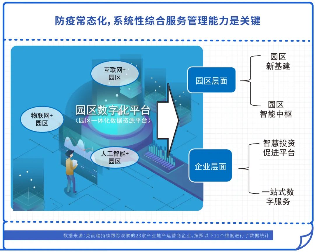 二是園區(qū)優(yōu)質(zhì)運(yùn)營成為企業(yè)必選項(xiàng),疫情考驗(yàn)著園區(qū)的和服務(wù)的效率和專業(yè)程度。如協(xié)助園區(qū)企業(yè)推進(jìn)復(fù)工復(fù)產(chǎn)審批及政策申報(bào);以園區(qū)為單位建立與政府對接的“專用通道”,解決企業(yè)復(fù)工復(fù)產(chǎn)后的餐飲、住宿、通行證、核酸檢測服務(wù)等問題。