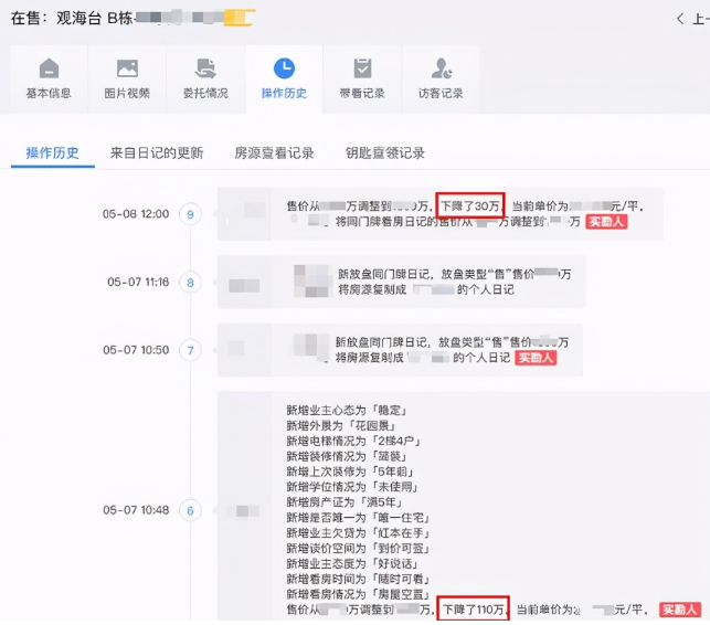 南山后海的觀海臺,兩天內(nèi)報價下調(diào)140萬。5月7日下調(diào)110萬,5月8日業(yè)主再下調(diào)30萬。